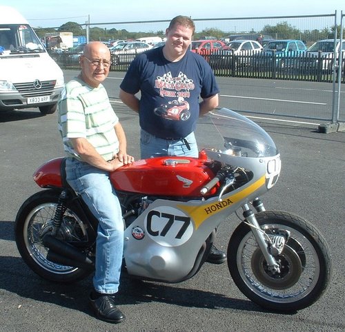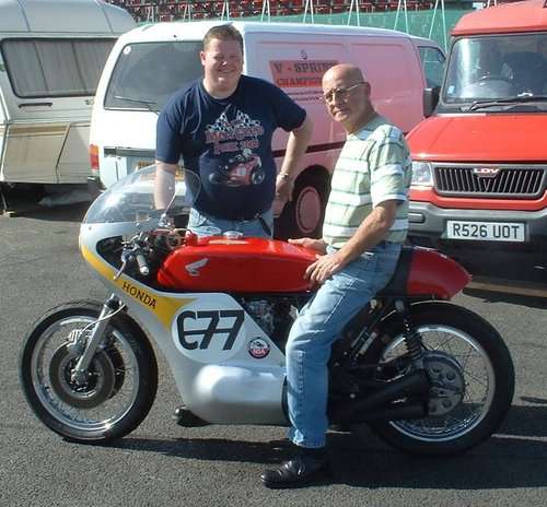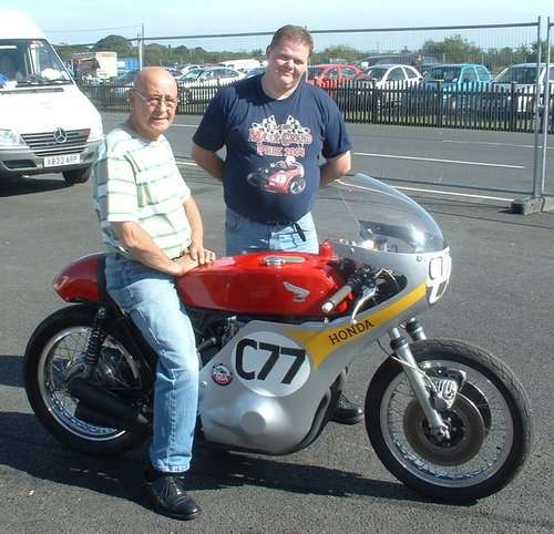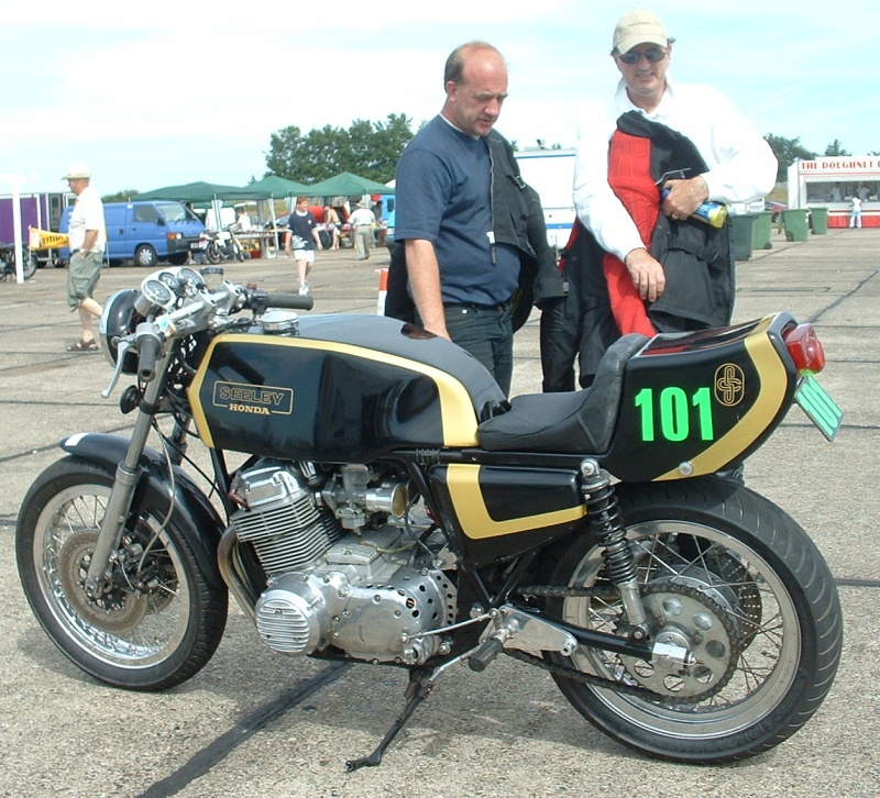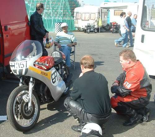 Picture shows Eamon Maloney (UKCB750CAFERACERS) pondering the engineering while Jim Shea holds his orange drink!