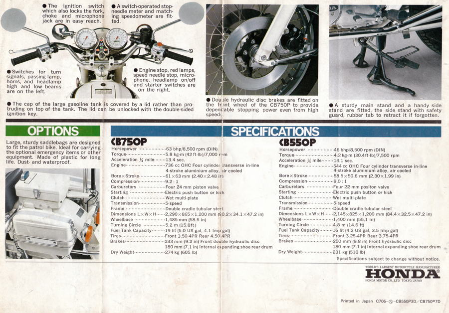 Honda produced two SOHC/4 police bike variants, the CB750P and the CB550P.