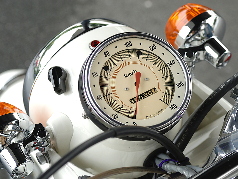 The BikeBros features these detailed photos of a 1970 Japanese CB750P.