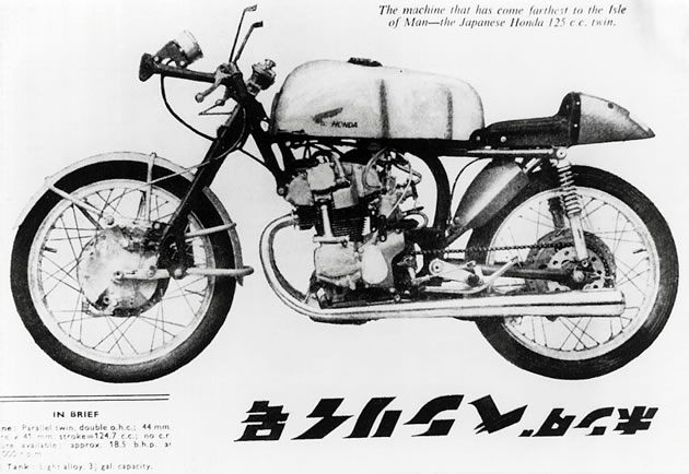 In 1958, Honda put Kiyoshi Kawashima (later President of Honda Motor Co.) in charge of an effort to compete at the Isle of Man Time Trial.
