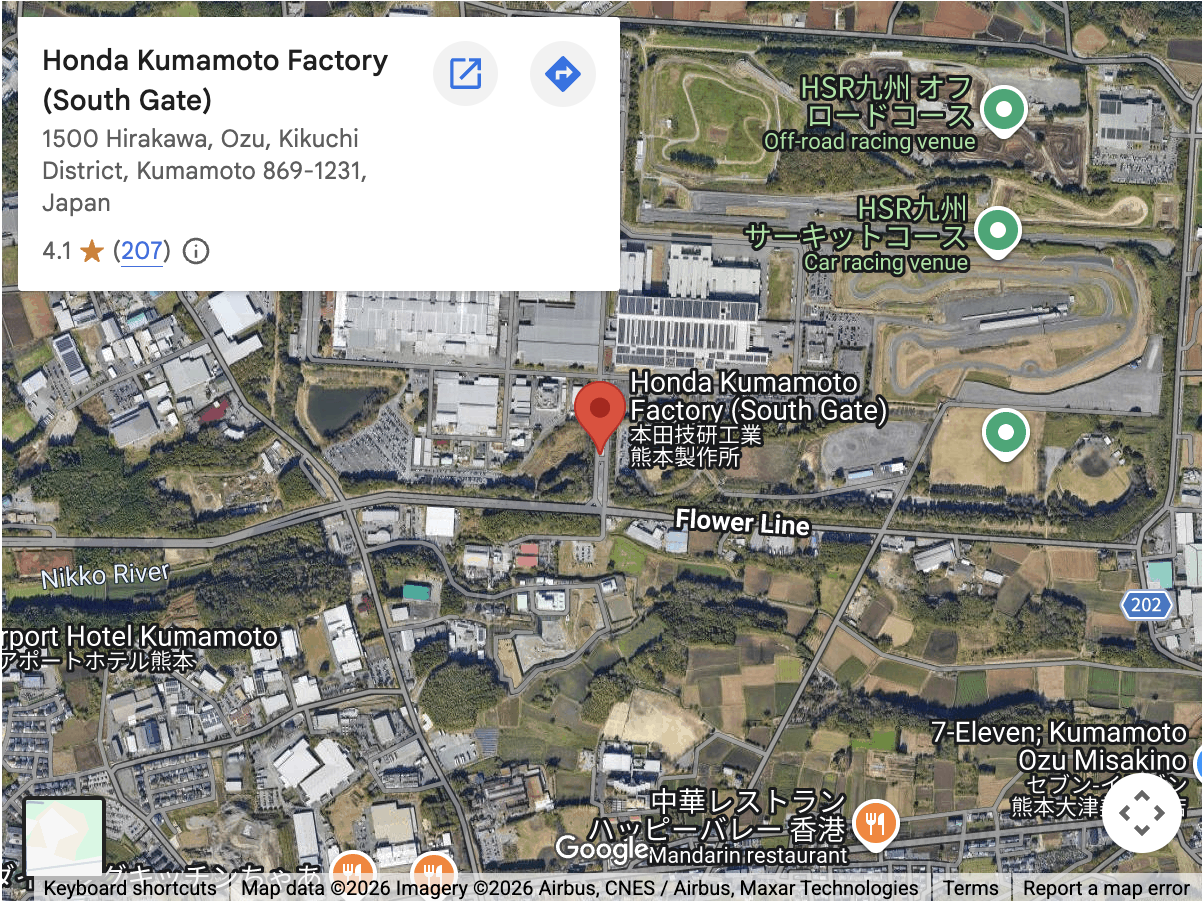 The Kumamoto factory was built in 1974 as part of Honda’s efforts to modernize their production facilities. The CB650 production occured at this plant. Today, Kumamoto is the site of Honda’s newest facility which will consolidate motorcycle manufacturing in one plant, taking on production from the plant in Hamamatsu and the plant in Marysville, Ohio, USA.1500 Hirakawa, Ozu, Kikuchi District, Kumamoto 869-1293, Japan
